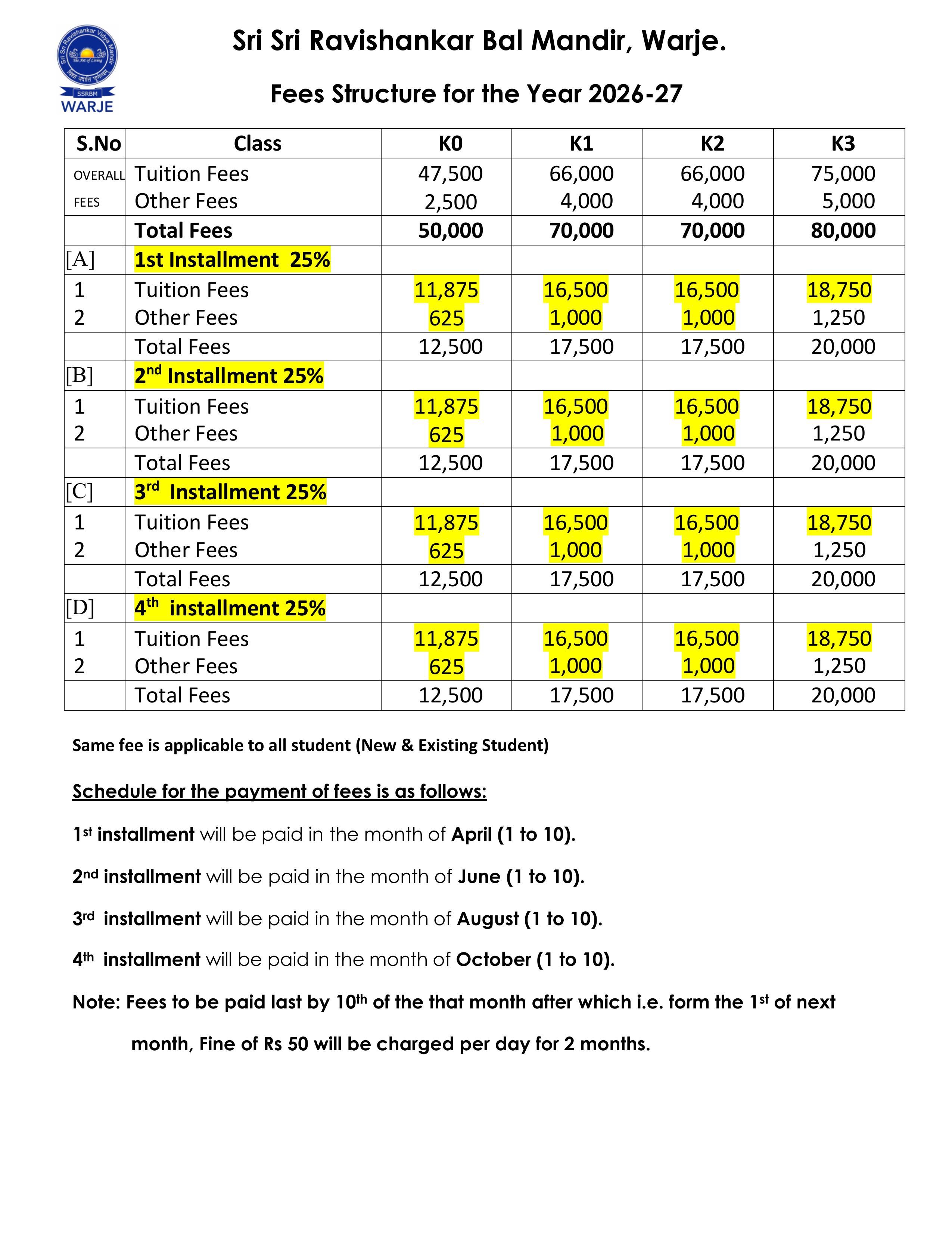 - Confirmation of the admission by parents by paying prescribed admission fees.